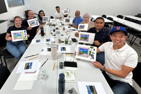 This was a great group and it was fun to share watercolour techniques but also the importance of putting down our devices and taking the time to really see the world around us in our daily lives. It was a pleasure for me to spend some time with the finance team but they still won’t switch gears and allow me to do any accounting. 🙂