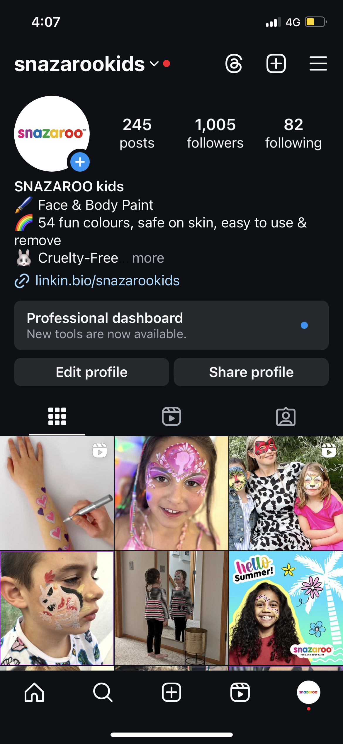 The Wall 1 year, 8 months agoSince its launch in January 2023, the Snazaroo Kids Instagram has quickly grown, reaching an exciting milestone of 1,000 followers. This platform has been instrumental in showcasing our creative collaborations with beloved children’s brands like Gabby’s Dollhouse and PAW Patrol, captivating the imaginations of our young audience. The account has played a crucial role in our brand’s strategic pivot towards engaging children under 10, offering vibrant and engaging content tailored specifically for this age group. The enthusiastic response highlights the success of our efforts and the role of the platform in driving recommendations and referrals to the Snazaroo brand.