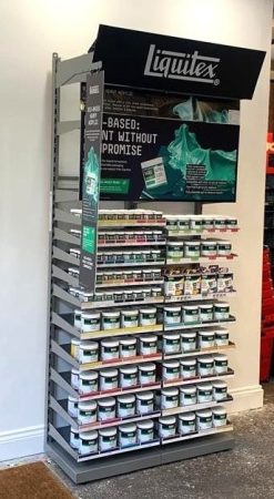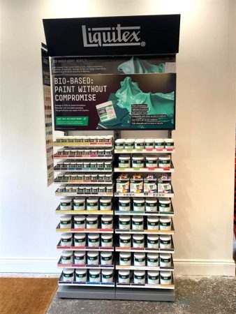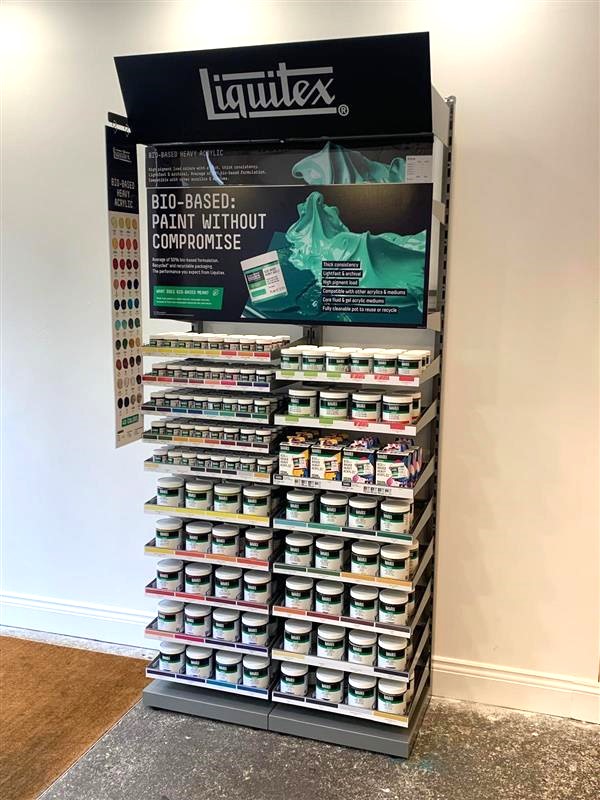 Liquitex Bio EU Inline units were installed in 11 of their stores, including their 2 Flagship stores, Islington and Glasgow, which have the 2-bay unit displaying full range. Where space was restricted, Bio based was displayed on Cass’s own merchandising equipment.