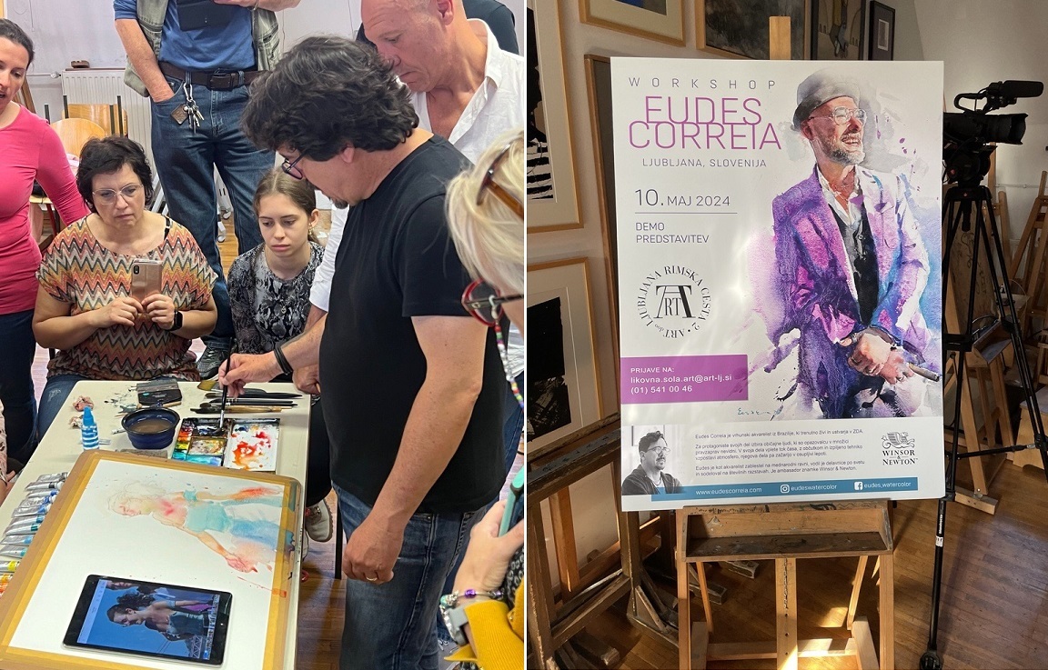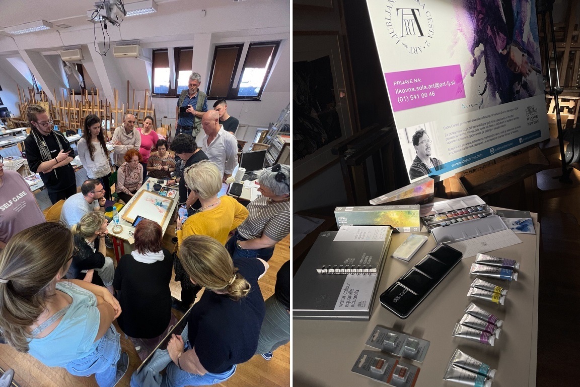 The Wall 1 year, 11 months agoLast week on Friday and Saturday I had the opportunity to take part in a demo and watercolour workshop organised by one of our business partners in Slovenia. The presenter was a great watercolourist and a very nice man who has been working with us for many years – Eudes Correia. We presented prefessional watercolour, natural and synthetic brushes and watercolour paper. All from our excellent brand Winsor&Newton.