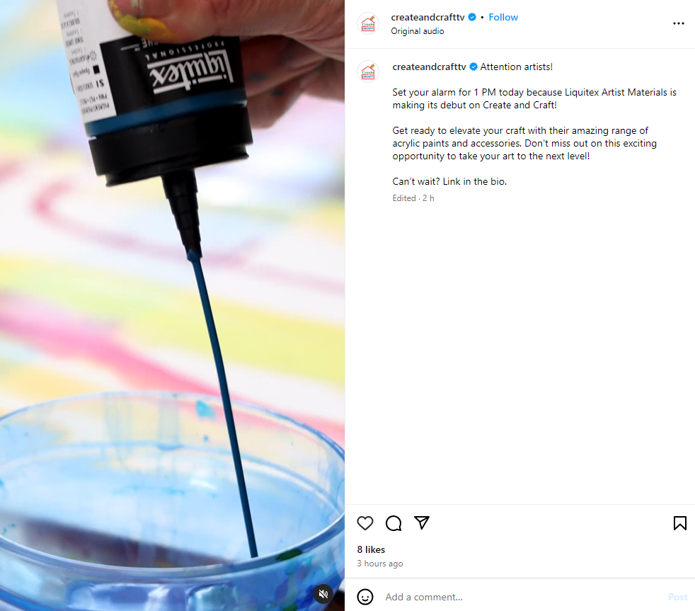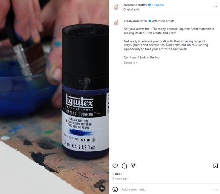The customer has put Liquitex on their homepage, posted a video to their social media channels and emailed their customers ahead of the event to generate momentum in the build up to the show.
