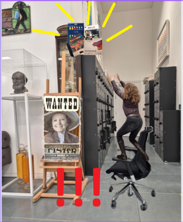 Standing on a chair is very dangerous and she could easily fall over. Unless there was a tall person available like myself, it would be better to use a safety ladder to reach high objects, ideally with someone supervising to support the ladder. Preferably you would ask someone from huckletree to do this as likely they will be insured for this kind of stuff, and trained to work at heights safely.