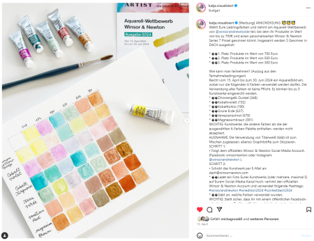 We have several landing pages on the W&N website where participants can find all the important information about the competition (example ROW): https://www.winsornewton.com/row/paint/watercolour-2024-contest/