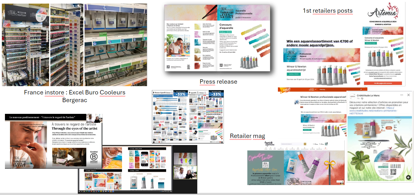 Nous sommes ravis de vous partager quelques informations concernant le webinaire organisé la semaine dernière pour nos clients Français et Belges, consacré à l’aquarelle Winsor & Newton.L’occasion de mettre en avant :- Le nouveau positionnement de la marque Winsor & Newton et sa certification B-Corp,- La campagne aquarelle 2024 et le jeu concours européen.Et d’émerveiller nos clients avec la démonstration des couleurs de l’édition 2024.Nous avons clôturé la session en présentant les super outils développés par les équipes Brand et Shopper.Merci à tous les collaborateurs qui ont permis de mettre en place ce projet.Plus d’informations sur la campagne aquarelle à venir … restez connectés ! 🙂