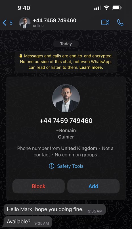 In this example it is immediately suspicious as its using an unusual mechanism to communicate (WhatsApp) when Romain would always use teams or a colart email address.