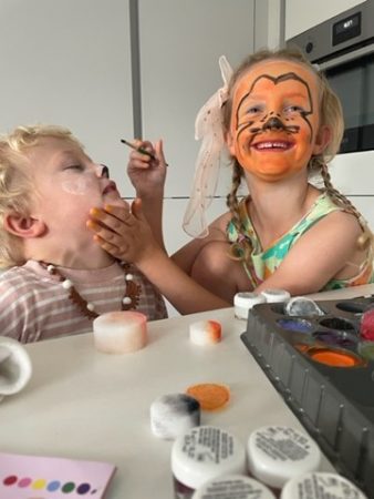 I love it, thanks so much for sharing. I especially love your daughter playing out the insight we got from research that it’s the kids themselves that want to do the painting – on themselves, their siblings and their parents. By the way loving your own monster paint design. It looks like a great family bonding session. Thank you