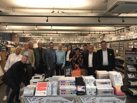 Our tour then took us to the iconic Foyles bookstore at Charing Cross. Foyles is now part of a wider book business comprising Foyles, Waterstones and Blackwell’s and represents an exciting opportunity for Colart. The business has recently diversified into the art category with a highly curated edit of brands being given dedicated space in a select number of stores. We were able to share the sizeable brand presence that has been secured for the Winsor & Newton brand and explain the journey that we are on with this chain of retail stores. Our final stop on the UK Trade Tour was to another iconic store, this time London Graphic Centre, a business now owned by Theo Paphitis, the retail magnate and star of the BBC Dragon’s Den. We were greeted by the stores’ COO and leadership team and were able to share how our brands are performing strongly, show where the team have secured a commanding brand presence and experience the buzz in store with their Student Day campaign in full flow.