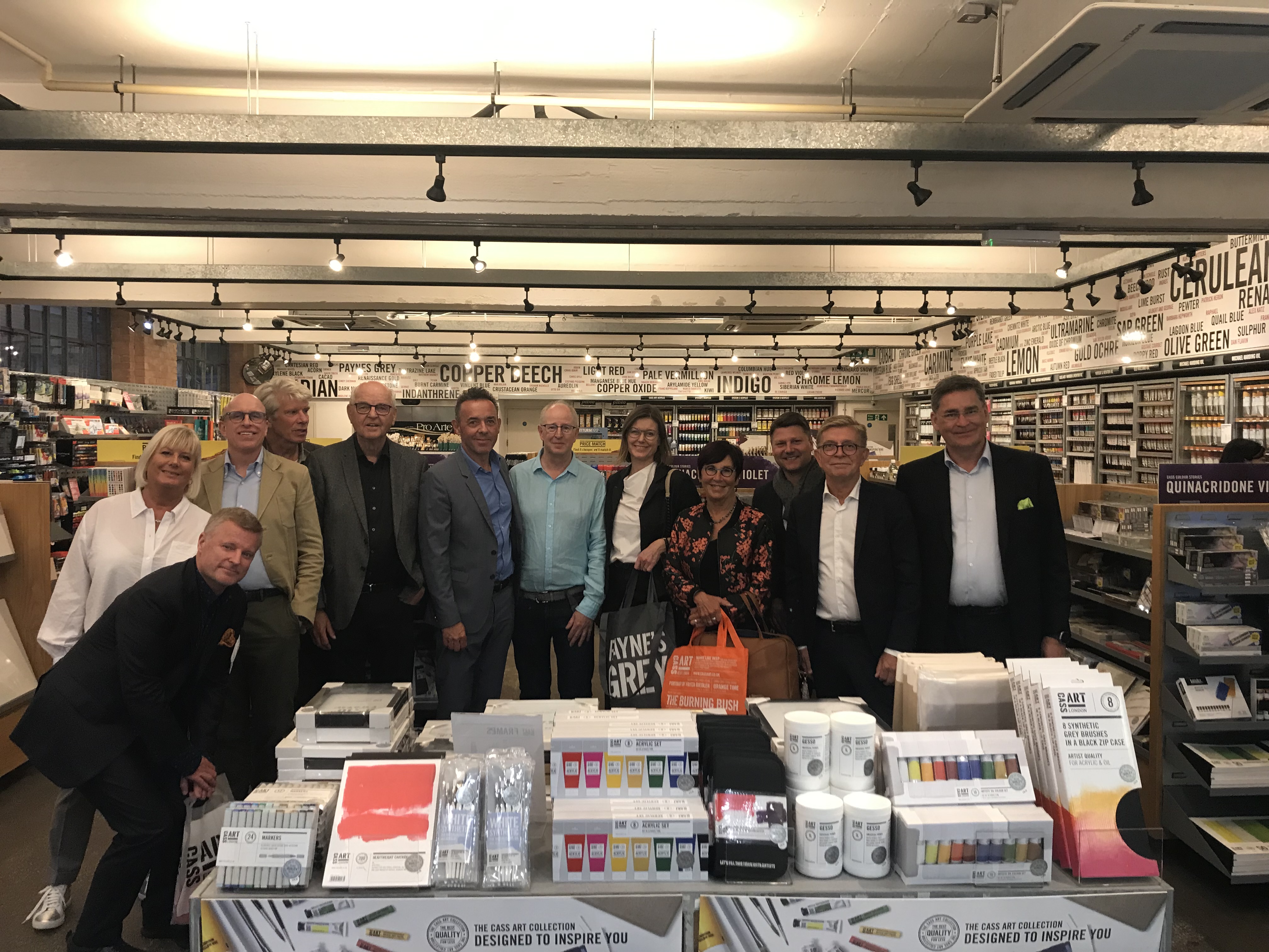 A super big thank you from me to the entire team at Colart UK for all the individual and collective contributions that ensured this UK Trade Tour was a success. Special thanks to UK Marketing especially Charlotte and Francheska for the digital activations of our brands that we work so closely with CASS on, to Stephanie Nebbia for the engaging and informative “The past informs the Present” session held at the London Hub and for the partnership training program that we deliver to CASS, and to Eden Cook-Watson for the positive impact he made with CASS at the recent CASS student day event which Mark Cass had kept on display to show Lindengruppen because he was so impressed with it. Special thanks to Martyn Symes, Emma Mills and Guy Peeke-Vout from the Fine Art Channel for all the work that is achieved day in day out with these businesses and for all the behind the scenes planning, preparation and set up as well as the in-person attendance from Guy on the day. Thank you also to Romain and Gail for their support throughout. And finally, a very big thank you to Amani who ensured every part of the Lindengruppen visit went smoothly including super slick transportation plan for the UK Trade Tour.