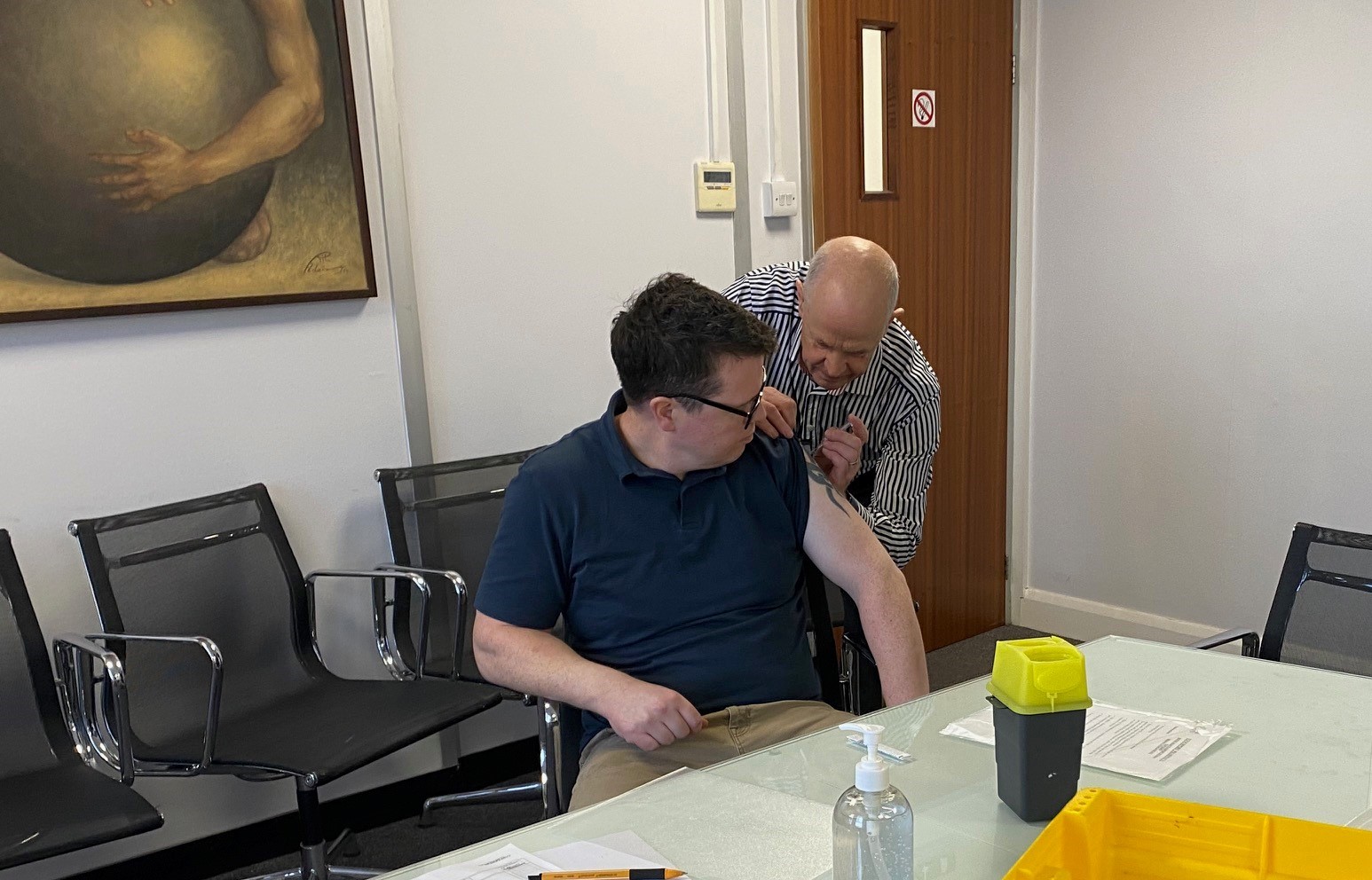 The Wall 2 years, 7 months agoToday in Kidderminster we had our annual flu vaccinations, conveniently in our boardroom, as part of our Wellbeing calendar.ย Our local pharmacist visited and 20 staff took up the opportunity to have the jab, including Dan who happened to be on site.ย