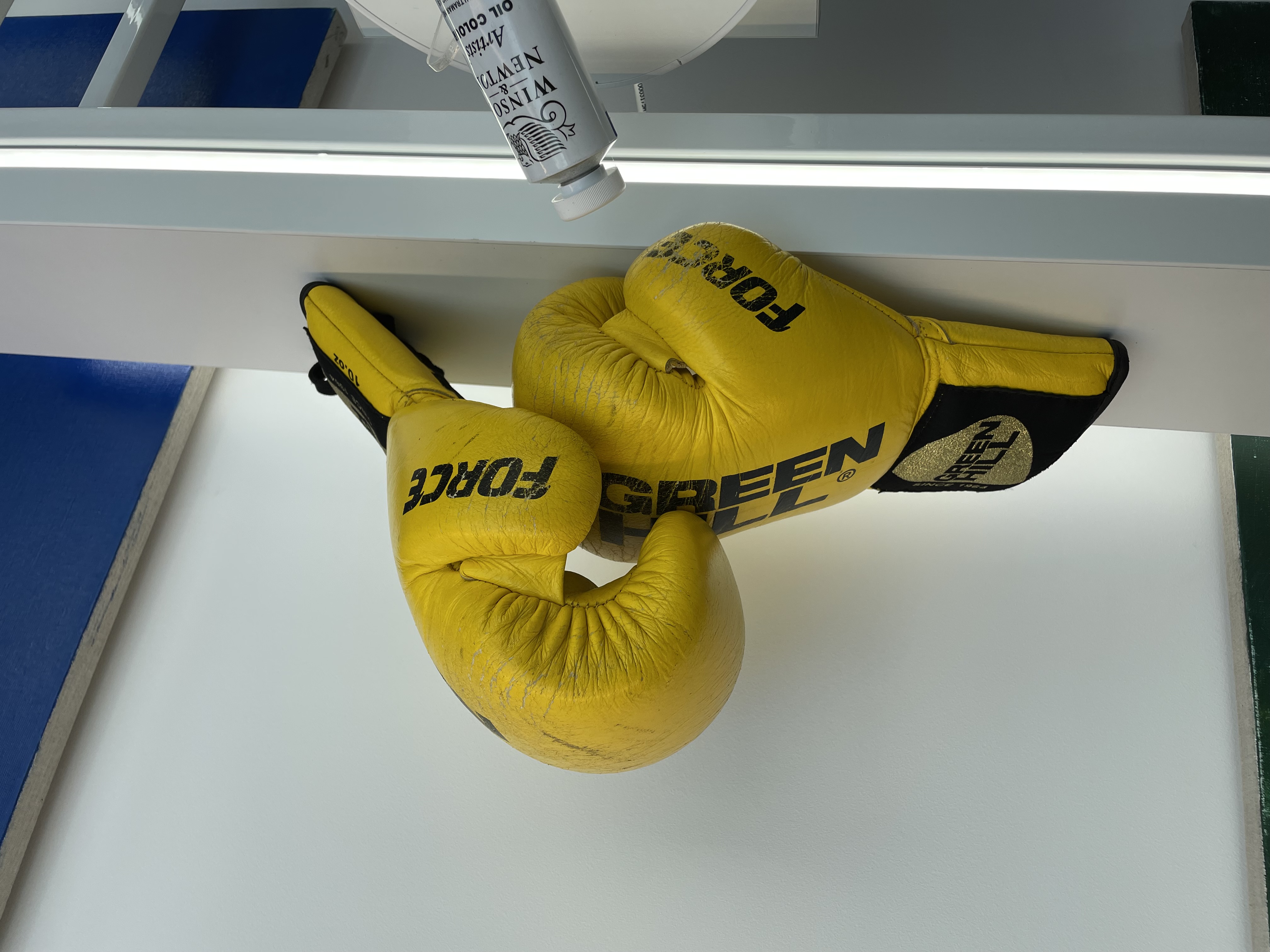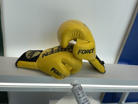 Boxing training is a daily routine for me. A permanent point of the day after which I start painting.I started boxing at the age of 16, and my approach to myself and my body changed dramatically. Also role models – when I was a player of the Gwardia Warszawa club – it was coach Sebastian Skrzecz.Today I know that who I am is not my body, but my beliefs. And the topics I take up always concern corporeality, identity, how we define ourselves, who we feel and what roles we play in the spectacle of life. A boxing match is also a spectacle. Choreography of two bodies performing movements practiced for years. The starting point for the boxing images was the figure of Andrzej Gołota and the desire to tame the phenomenon of failure. Gołota, as its symbol, was nevertheless the hero of Polish dreams of foreign success and fame. For me, he is an icon of the losers movement, because even though he never won a championship, he is an important figure among boxing fans.