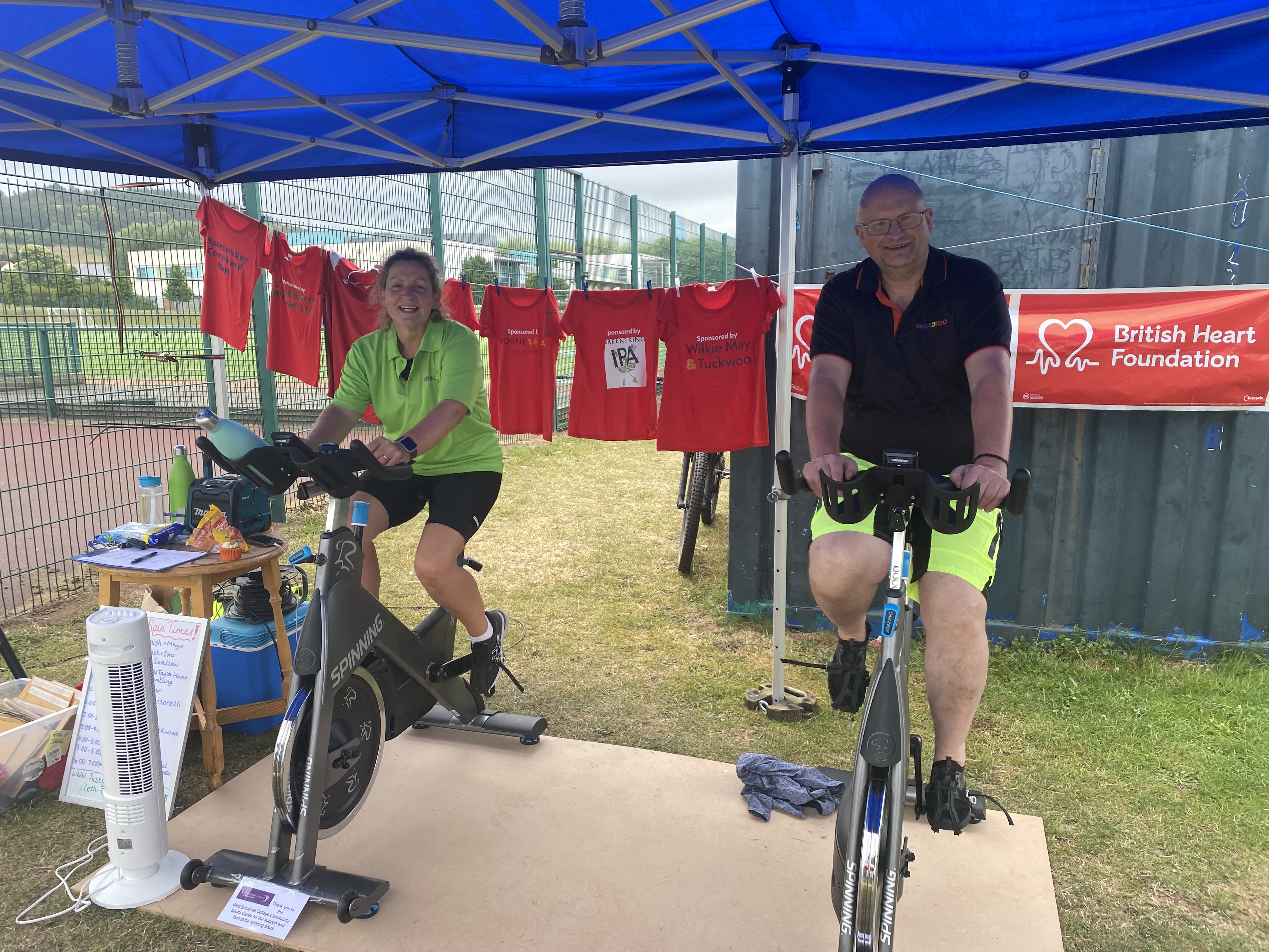 The event’s purpose was to raise funds for the British Heart Foundation and to purchase a bench in memory of a well-known and very popular local businessman who recently passed away. As this person was an avid member of the Minehead Cricket Club and a devotee of their spinning classes, local sportswoman Suzanne Richards organised a day of sponsored cycling.