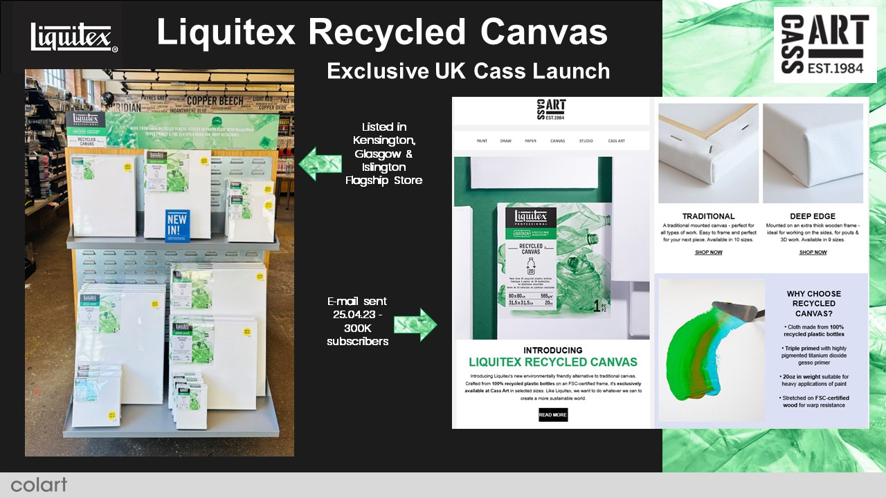 The Wall 3 years agoWe recently launch NEW Liquitex Recycled Canvas in partnership Cass Art. The short exclusivity period gives us access to some of their best marketing resources and communication platforms.