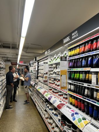 FYI – this photo was Romain visiting Blick Art on 6th Avenue, NYC, recently – talking to the Blick assistant store manager Mazen who was super proud and passionate about the store and their success with Liquitex (and W&N I should add). …