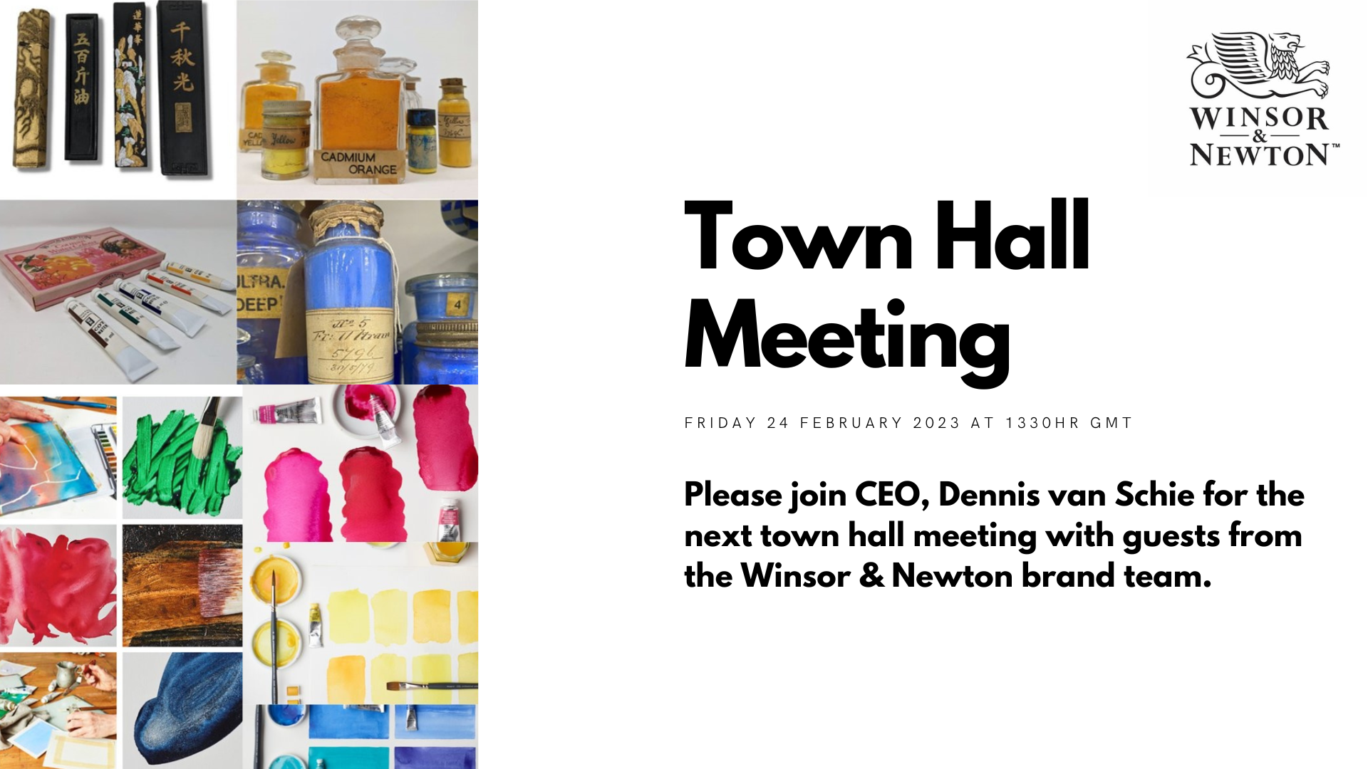 Just a reminder that the Town Hall Meeting happens today at 1330h GMT, featuring guests from our global brand team at Winsor & Newton.