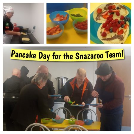 Today our fabulous well-being team organised a pancake lunch with freshly made pancakes, accompanied with fruit and toppings. Many people played a part in setting up, buying the supplies, cooking, cleaning etc, it really is a team effort, even the managers get stuck into the washing up!