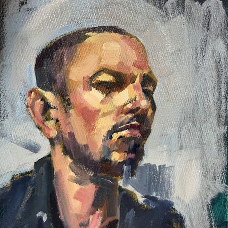 The skin tones are mostly Cadmium Free Yellow Pale, Underpainting White and the New Transparent Orange and Ruby Madder Alizarin, while the hair and beard are mostly comprised of the new Smalt with Warm Brown Pink and Ultramarine Pink. Fun colours that work well for portraiture.