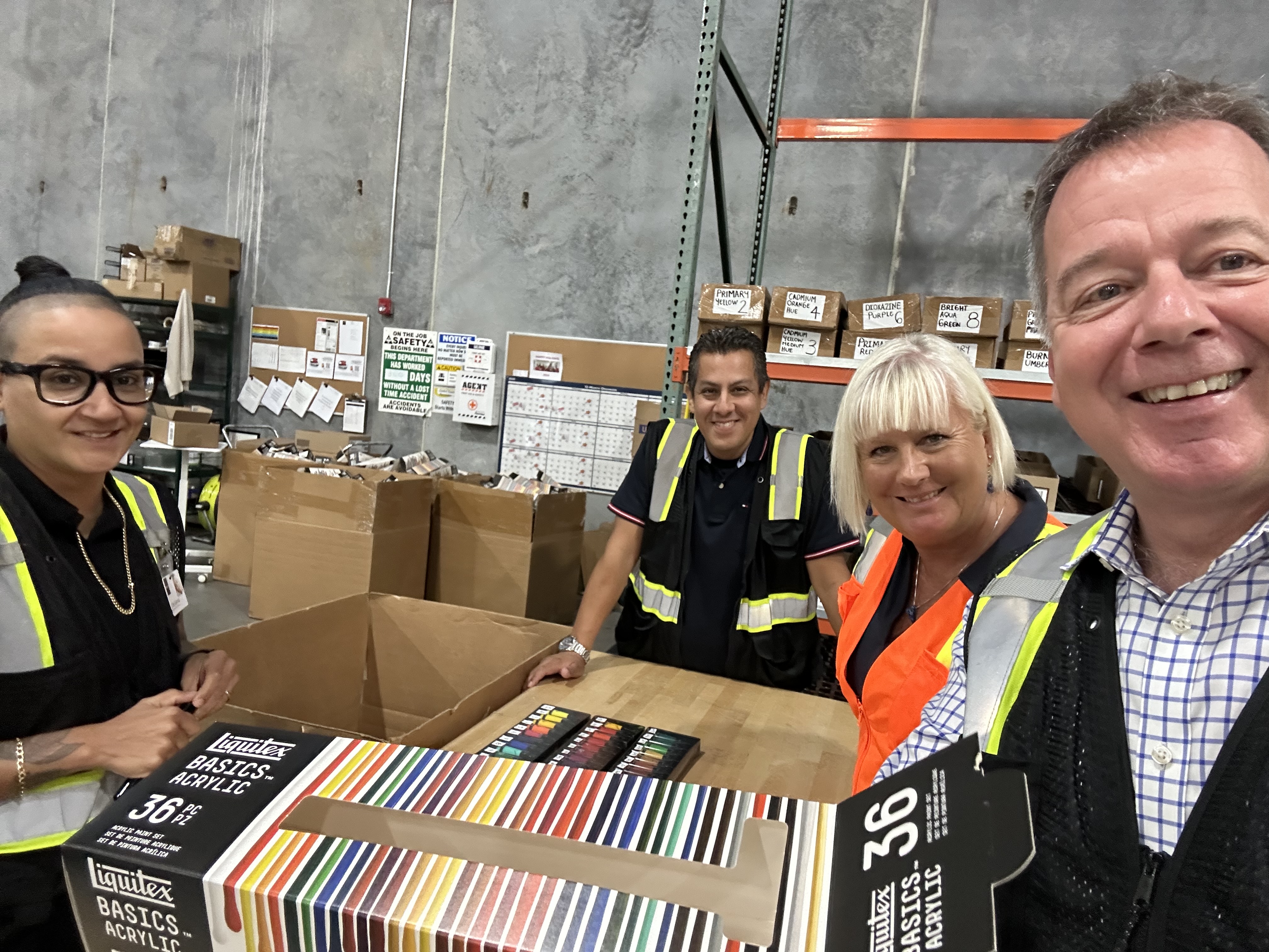 The Wall 8 months agoGreat to have Gail over and we had the chance to visitthe Piscataway DC4 and get to see the first assembly run of Liquitex Basics set of 36 in NJ. Well done all working on this project!