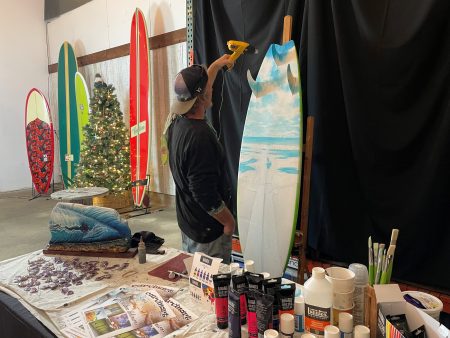 The Wall 4 months, 1 week agoLocal NJ artist Ronnie Jackson painted a surfboard at the Jetty flagship store Friday night during their Holiday Village event using Liquitex inks in his airbrush and glazing medium. A beautiful way to celebrate the Holidays, the NJ shore while creating art out of upcycled materials. Jetty, a surf lifestyle brand, is a fellow BCorp and Liquitex brand partner.
