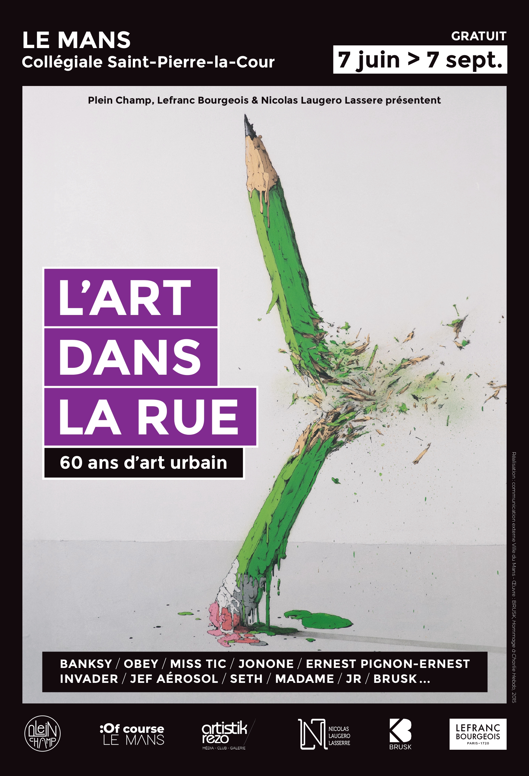 En parallรจle, Lefranc Bourgeois est รฉgalement mรฉcรจne de lโexposition โ60 ans dโart urbainโ, un รฉvรฉnement exceptionnel qui investit la Collรฉgiale Saint-Pierre-La-Cour au Mans, pour faire rayonner lโart urbain au cลur du Mans.ย