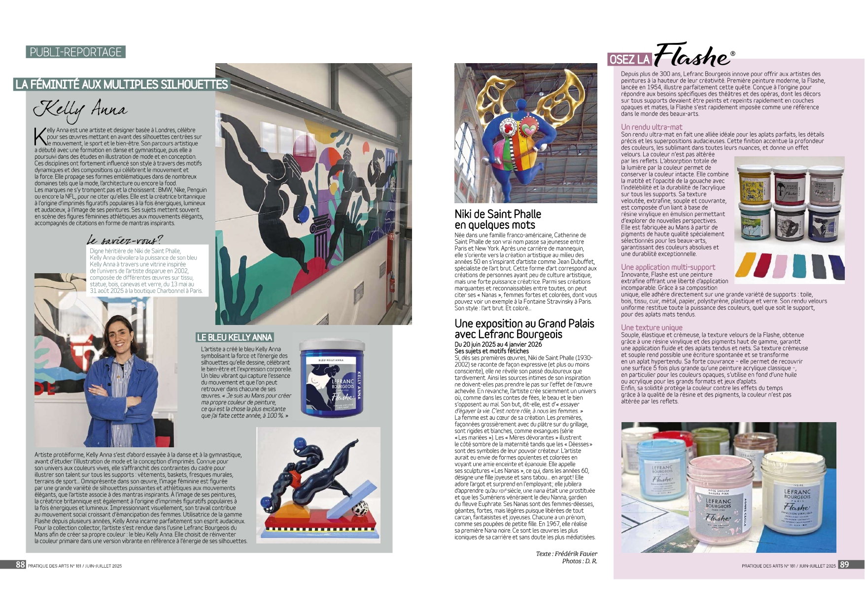 ✨ Lefranc Bourgeois featured in Pratique des Arts magazine!A superb four-page article highlights our two female ambassadors for Flashe Collector, Agnes Cecile and Kelly Anna.They embody our vision: daring, joy and transmission, with powerful creations and two new shades, Rose Sakura and Bleu Kelly Anna.Kelly Anna pays tribute to Niki de Saint Phalle, a major figure in our heritage, who also used Flashe paint for her iconic Nanas.🔗 And we are proud to be partners of the Niki de Saint Phalle exhibition at the Grand Palais in Paris this year, which begins on 20 June.📖 Discover it in the new issue of Pratique des Arts!