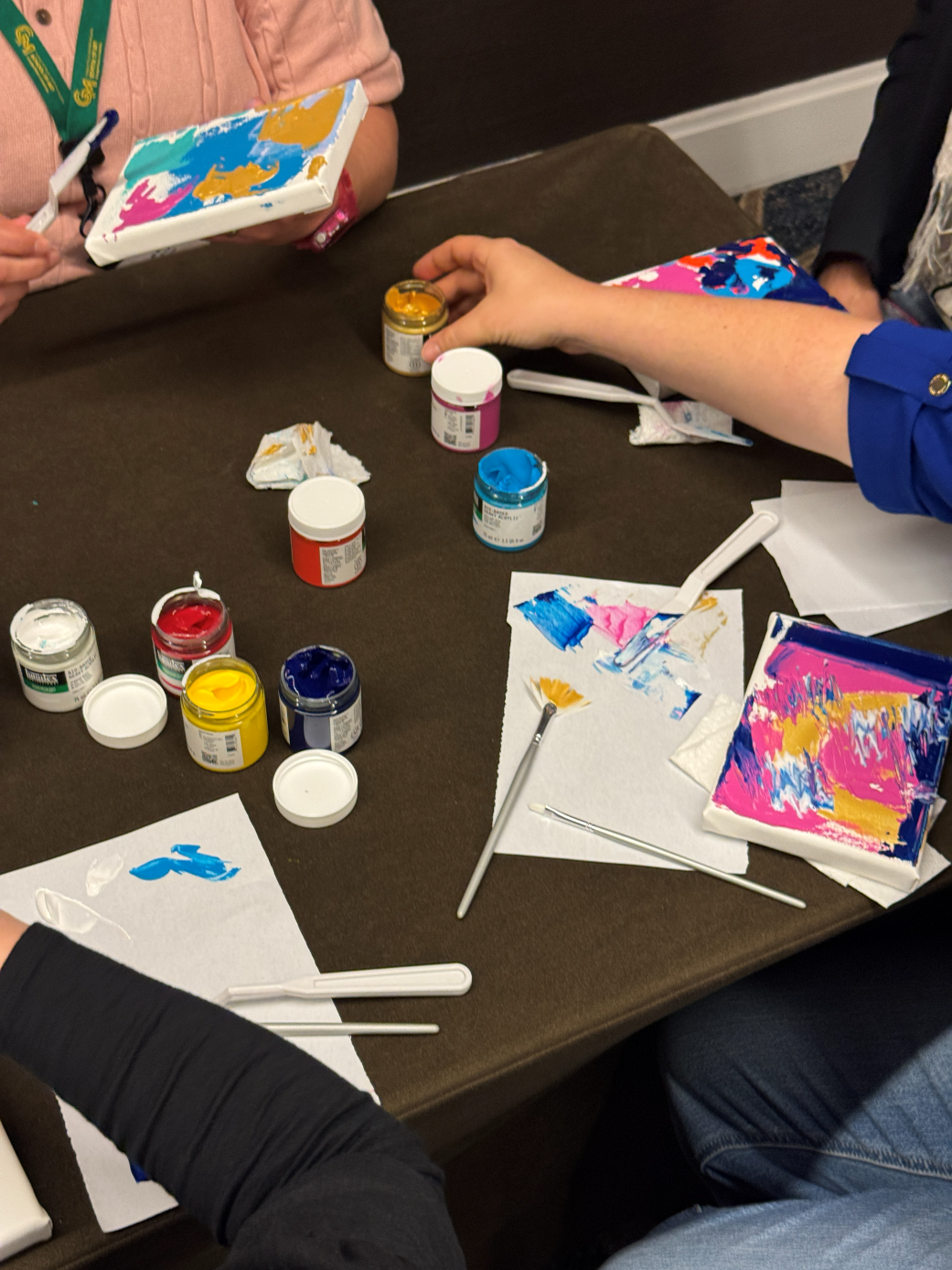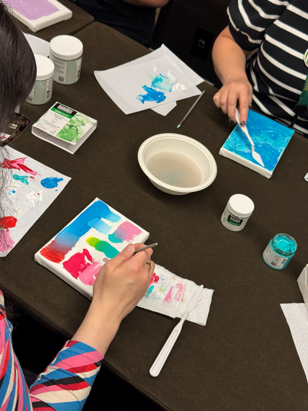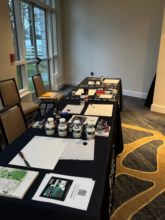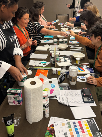 Lots of interest in the bio-based paints from educators looking to guide their students toward sustainable options. Iridescent gold from bio based was a hit. Common questions asked were about the ingredient makeup, if using the paints makes a substantial difference, and the price point. Sometimes a guided demo/simple product exploration is a big hit at conferences where attendees are mostly hearing lectures. Printouts guiding visitors to educational resources on the site were really appreciated as well! …