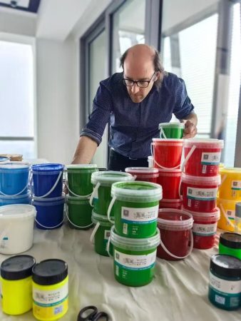 The Wall 12 months agoInternational artist Mr. Antonio are using FAC 300ml and 1L to prepare his solo exhibition \”Mini Monumental Gravity Chongqing\” at Raffles Art Center on the 73rd floor of the highest building in Chongqing, in south west of China. Exhibiting on such a high floor could provide a stunning backdrop of the city, adding a unique aspect to the exhibition\’s presentation & exposures of our newly launched products, W&N Fine Acrylic Color 1L bottle.