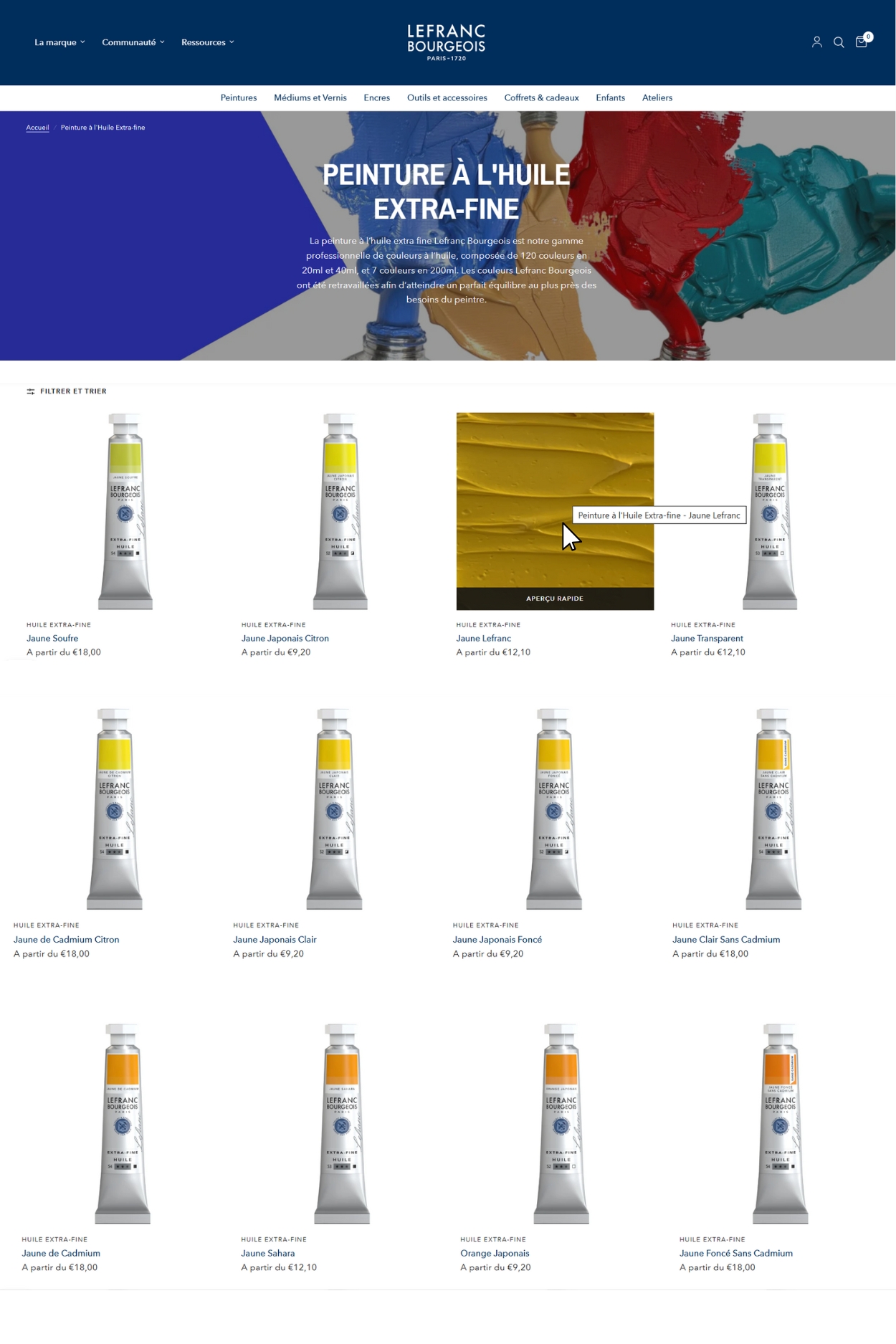 Navigation has been redesigned to be smoother and more intuitive, guiding consumers at every step. Products are showcased with high-quality photos and immersive videos, providing a better perception of colours, textures, and real-life applications with just a hover. Each product page has been carefully crafted to help artists envision their creations and make informed choices.