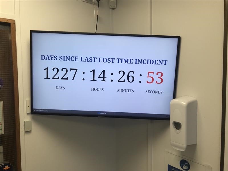 At our recent UK meeting, all attendees were welcomed with these screens and key statistics showcasing the site has over 1,227 days and counting… with Zero Lost Time Incidents.