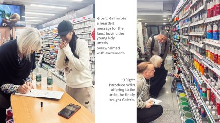 The Wall 5 months agoGail and Jack, accompanied by Jim, embarked on an engaging store visit. Where they meet brand enthusiasts. The girl was so excited to meet them and immediately purchased a W&N book to ask for Gail’s autograph. Overwhelmed with joy, she shared her posts about the process of painting in RedNote showcasing the tangible impact of our brand on her artistic journey.