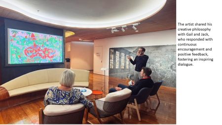 The visit continued as they headed to the residency studio of a Spanish artist Koctel, located at the Swatch Peace Art Center on the bustling Nanjing Road in Shanghai,. Artist Koctel passionately discussed his creative process, revealing the worlds and streets through his eyes.