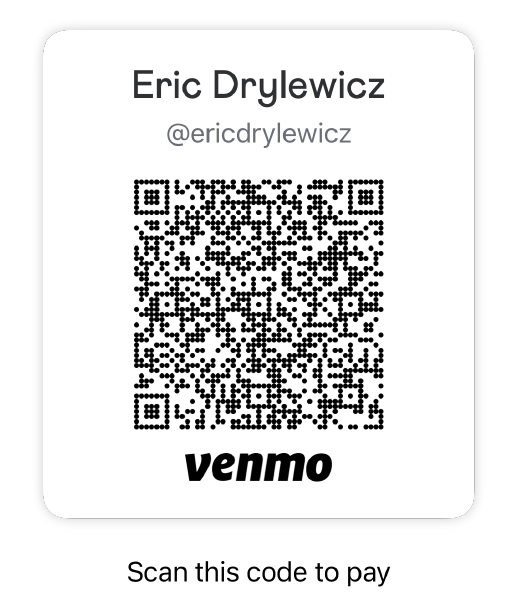 Venmo: @ericdrylewicz(Or scan the QR code below)