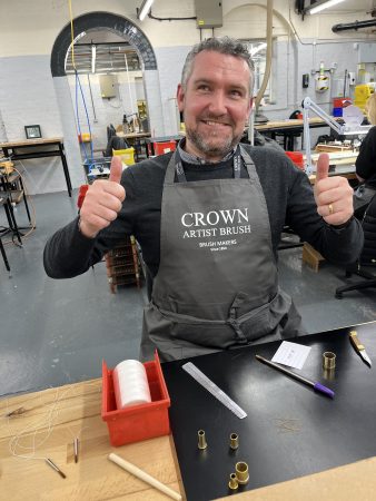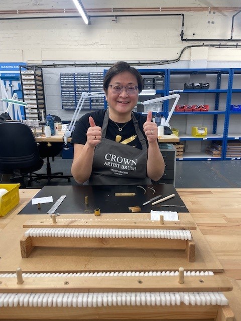 Many thanks to Mark, Theresa, Rob and the entire team at Crown for your hospitality and educating us on the processes in place at the site. Brush making was a memorable (if slightly stressful experience! Not quite sure if I’m smiling or grimacing in the photo below!