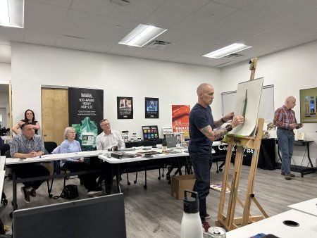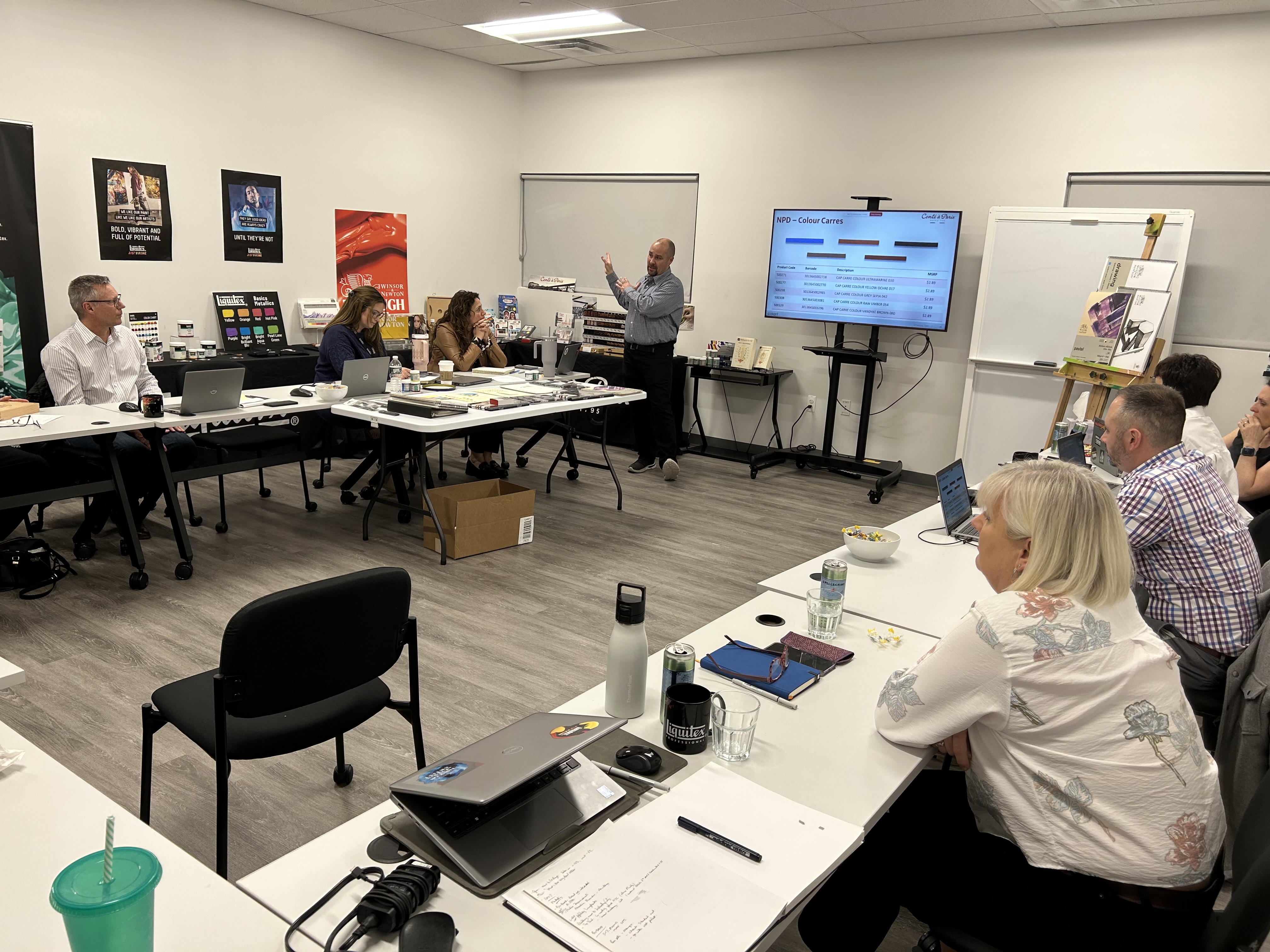 The Wall 1 year, 2 months agoThe NA Commercial meeting wrapped up with a session on our planned Conte a Paris relaunch….and Gail admiring the new W&N Designers Gouache sets being assembled in DC4.
