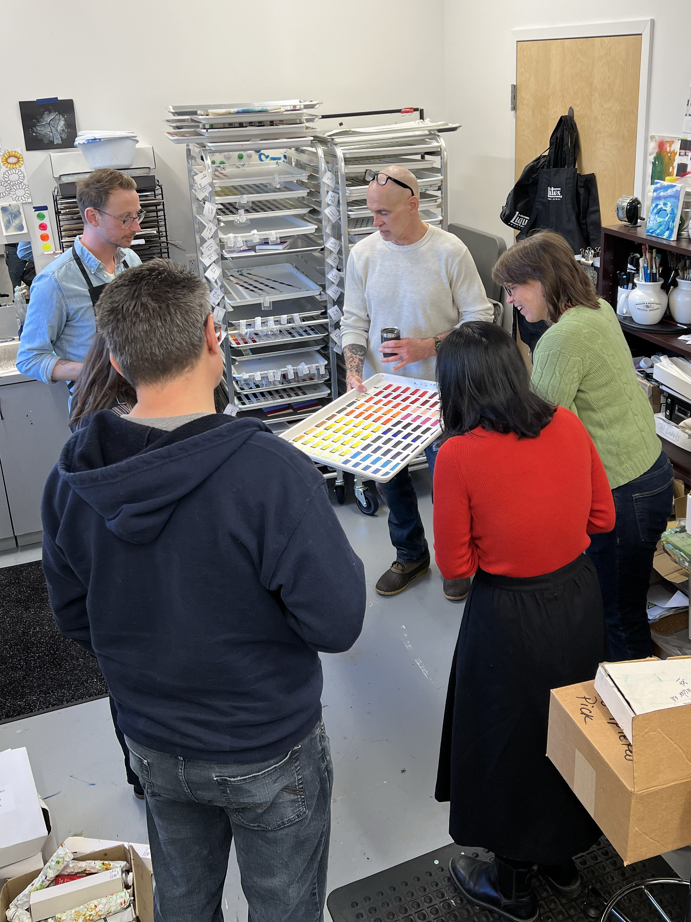 The Wall 1 year, 3 months agoThis week I had the pleasure of hosting and training 5 new artists in Piscataway for our Winsor & Newton Education Program. It was fantastic to see the energy and excitement that our brands bring to fellow artists. It was also a lot of fun to show them the DC and hear “whoa, look at all those rows of art supplies”! Thanks to Duane Romanell for the photos.