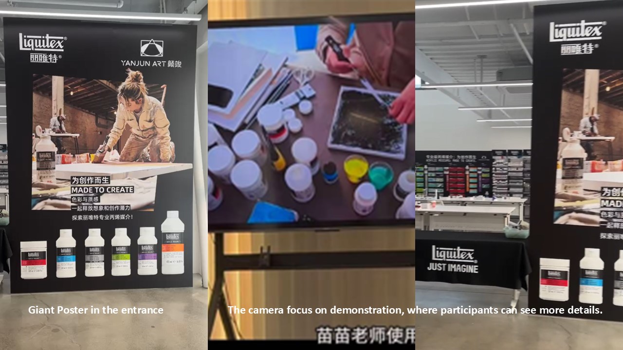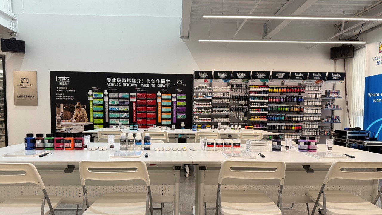 The first step was kicked off in December, when we organised a launch event in the customer experience centre of our main Shanghai customer YanJun. For this event, we updated the planogram and adapted brand content for the Chinese consumer, and also held a workshop with 12 professionl artists to explore the Liquitex mediums. A live-stream was held on YanJun’s e-store platform simultaneously with 300 active viewers.