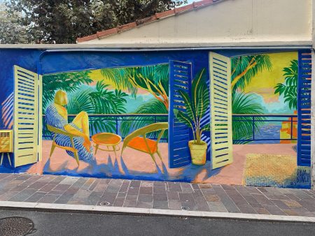 The Wall 5 months agoAs part of the Coulheures D’Autonome festival in Antibes, artist Olivia de Bona, whom we support in numerous artistic projects, pays tribute to Matisse with a fresco painted with Flashe, and comments: “Echoing Fauvism, I sought to explore the emotions of colour through vivid touches of pure colour, using Lefranc Bourgeois Flashe. The scene is an interior-exterior contrast between the landscape and the window that frames it, a recurring theme in my work, as in Matisse’s. A special thought goes out to Marie and Clémence from Lefranc Bourgeois, who supported me in this project with Matisse’s colours! Thank you for giving me the opportunity to explore colour even further.”