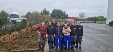 During our Community hours, we planted 300 trees on a factory’s parcel. We followed the Miyawaki method, which recommends planting very densely 3 trees on average per square metre and combining in each square metre all 3 layers of a natural forest : shrubs, medium-sized trees and large trees. The weather was not ideal but the strong will to do something for the planet was present!