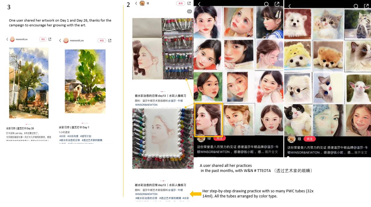 With calling out users to have a daily watercolor drawing, to share their parctice with product placement in social, the hashtag #TTEOTA soon climbed to 165 million impression. There are around 15K posts on social media, ranging from five to as many as thirty posts each within 40 days.