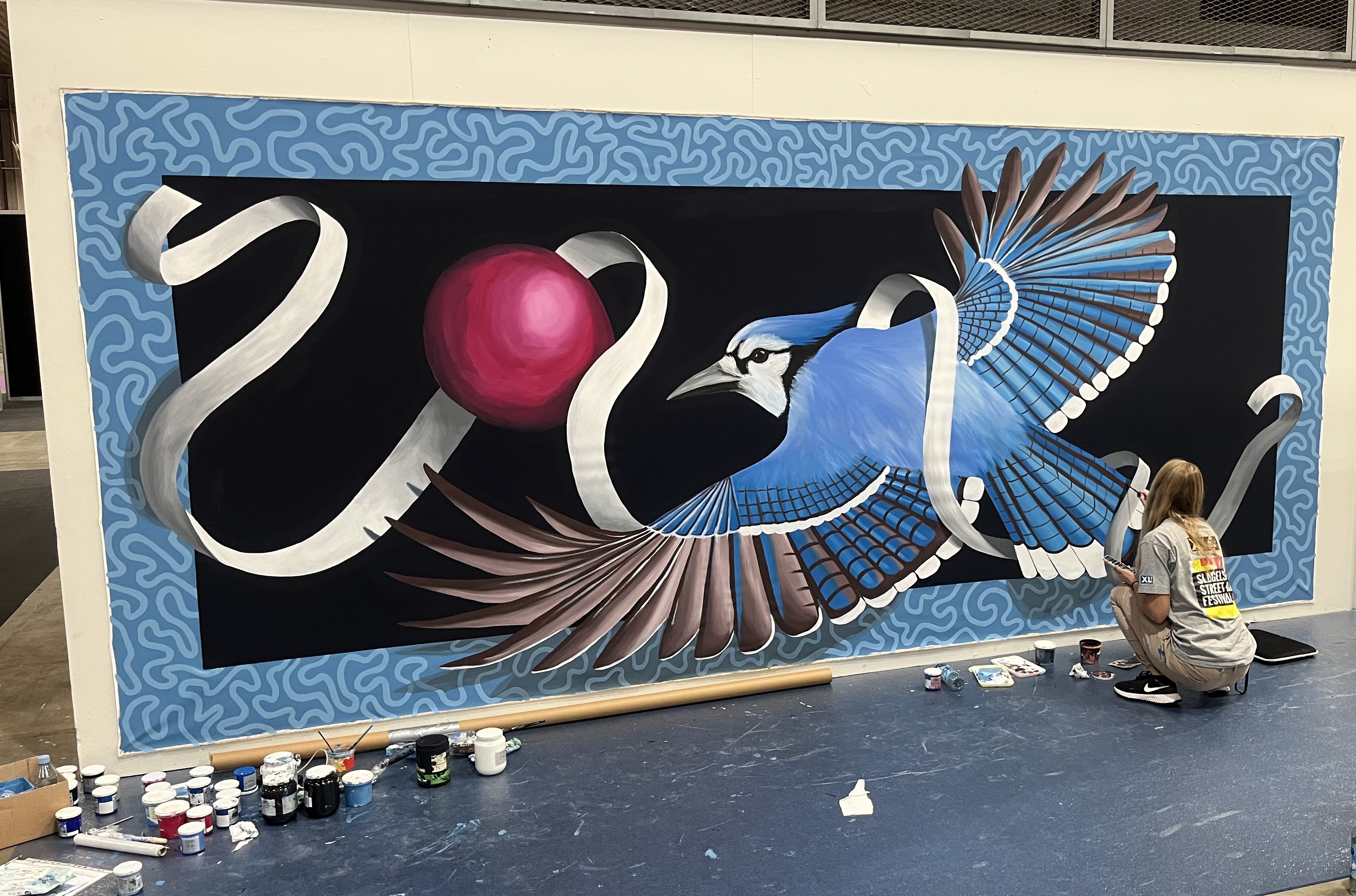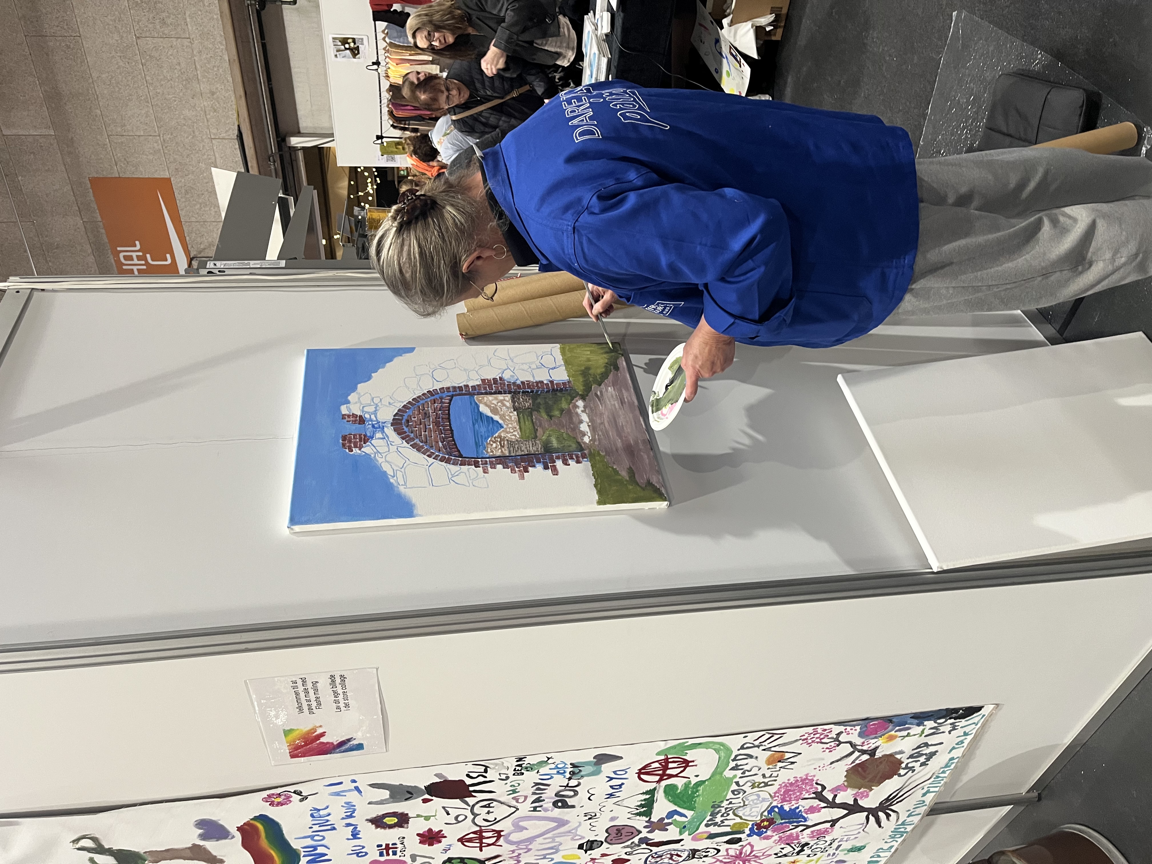 We had 3 Danish artists (wearing our LB Dare to paint jacket) working with us doing big paintings, walls and also showing the multi surfaces of Flashe.