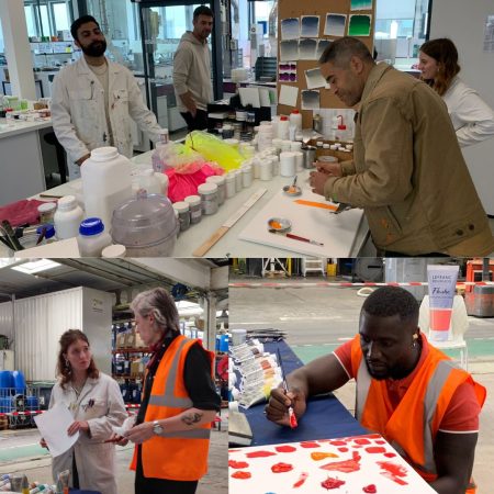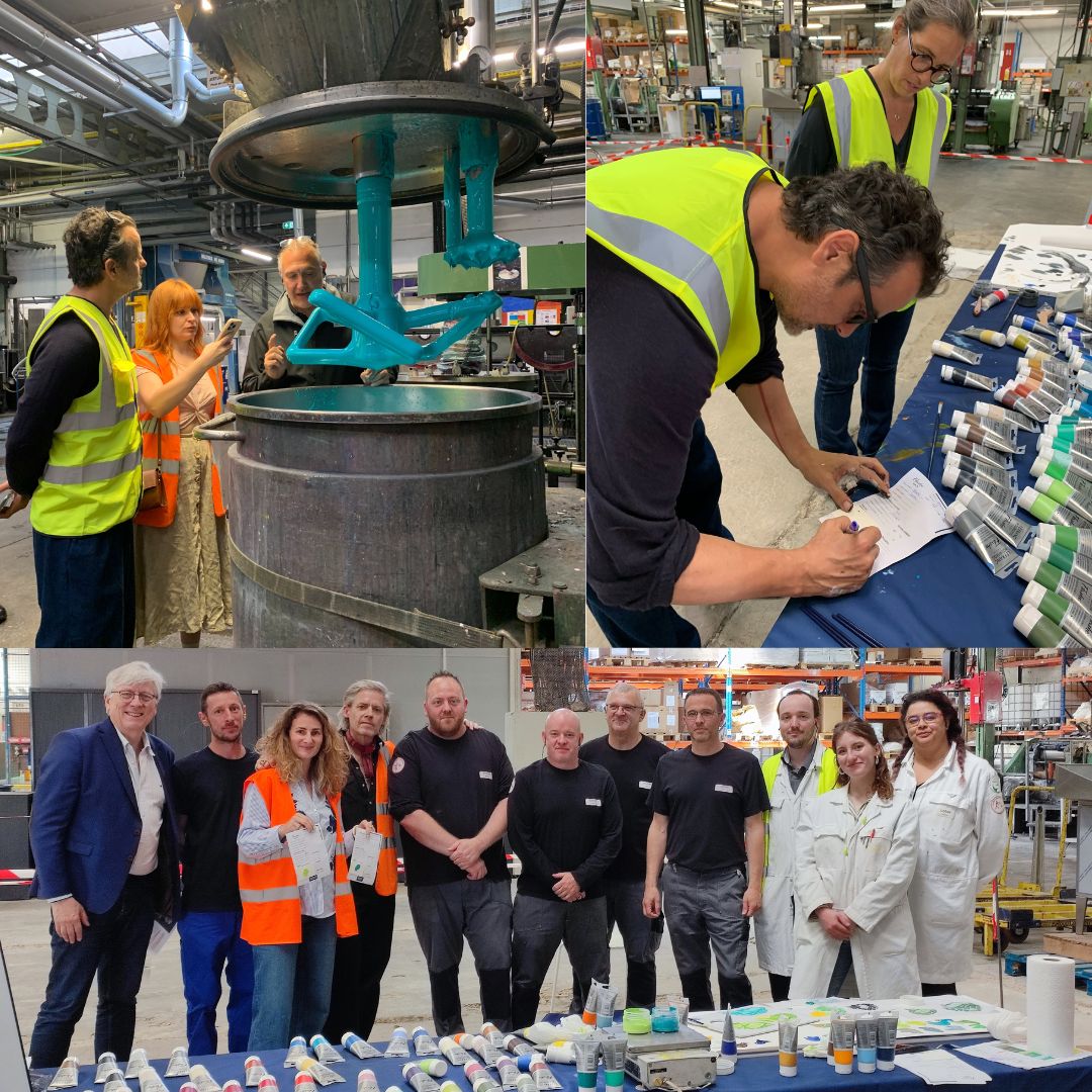 Chaque artiste a pu passer une journée à l’usine au Mans, partager avec les équipes, labo et fabrication, et ainsi créer sa propre couleur Flashe !