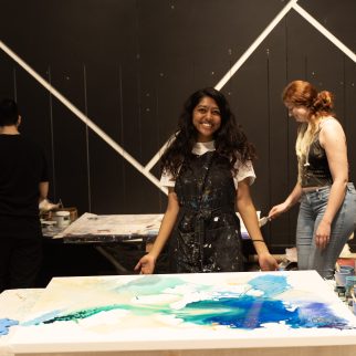 Terra Mode's soft opening at the Oculus in New York City featured the "Oceanic Abstracts" paint pouring workshop, where attendees collaboratively created an ocean-inspired painting using eco-friendly materials, embodying the event's themes of creativity, sustainability, and community.