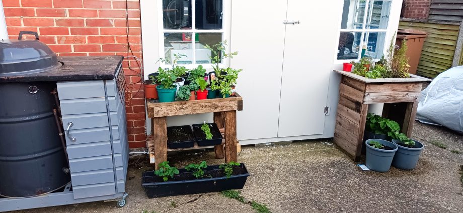In the middle is a salad table I made from rotted out joists that were removed from our house. Whilst somewhat decayed they still have plenty of life in them.