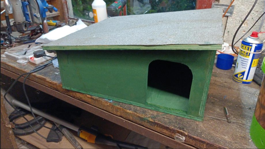 After discovering we had a family of hedgehogs nesting in our garden, I built this hedgehog house to keep them warm over the winter.