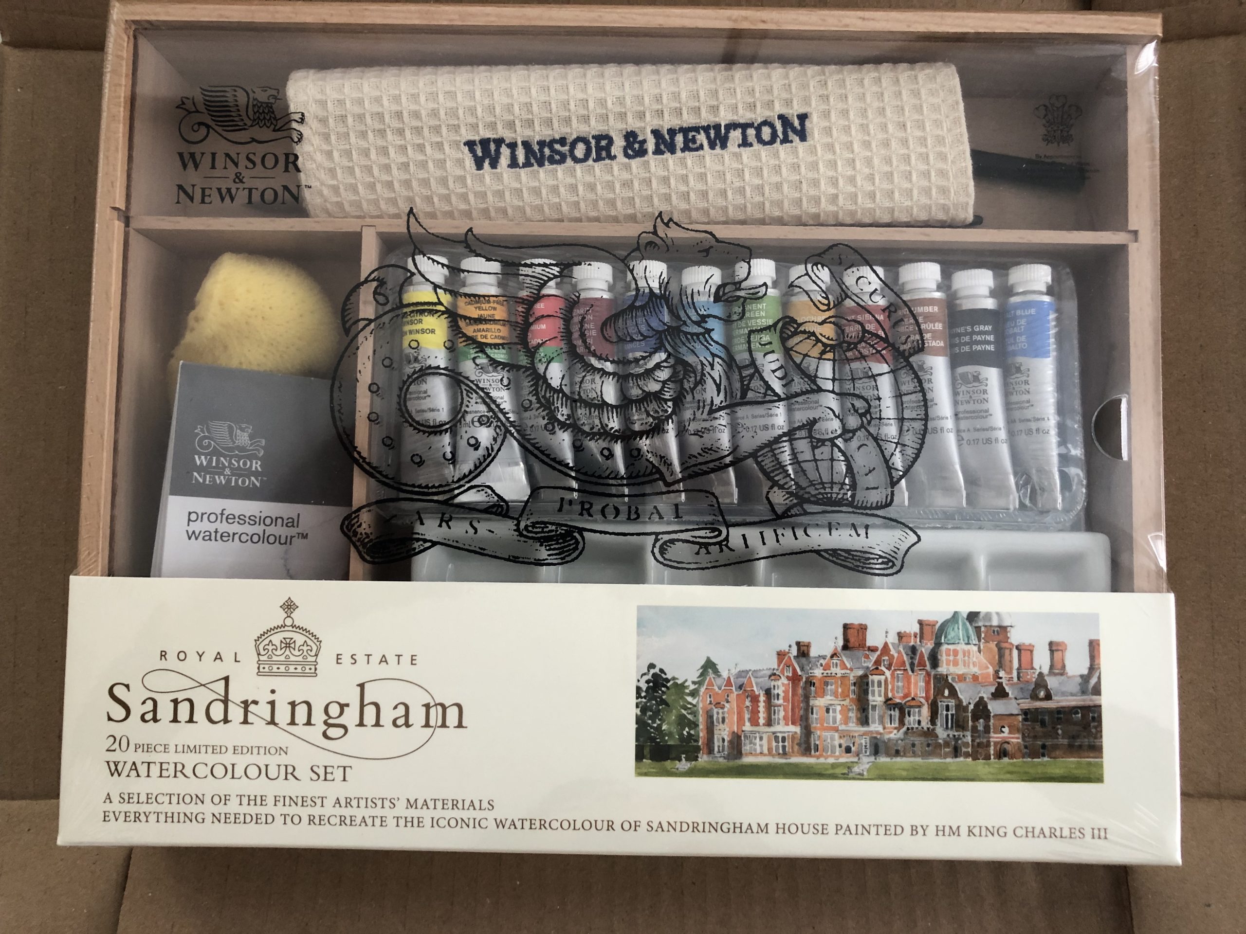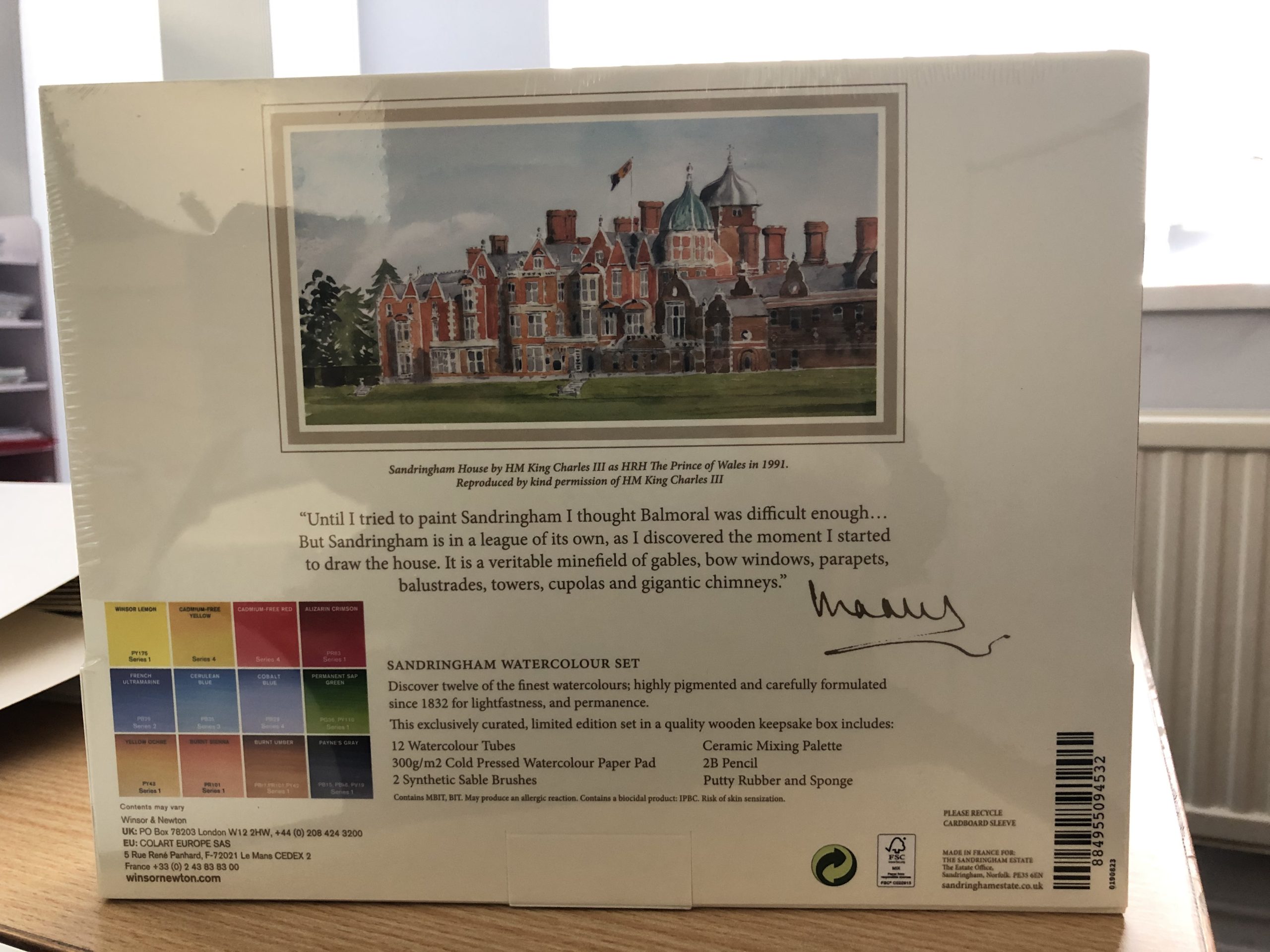 Secondly, celebrating the launch of the Sandringham Set is because of a request from the Sandringham Estate, on behalf of the King, to curate and produce an exclusive, bespoke set of watercolours which could be used to re-create his painting of Sandringham.