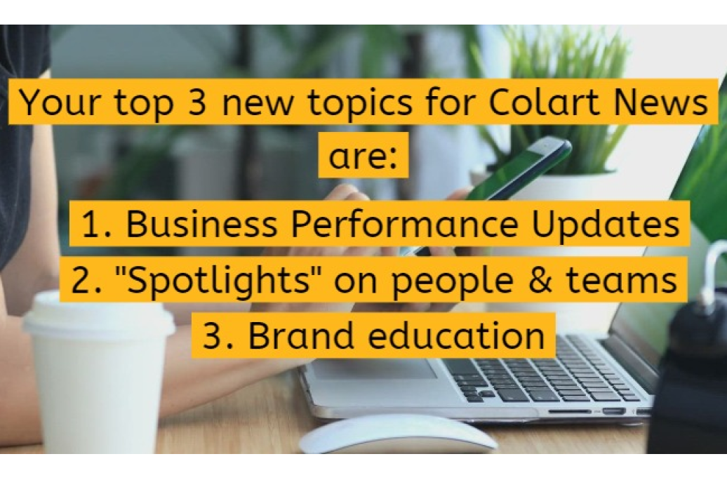Like the Colart News, a document has been developed to be distributed across the business and consider whether suggestions are viable and implemented. Findings will be communicated back.