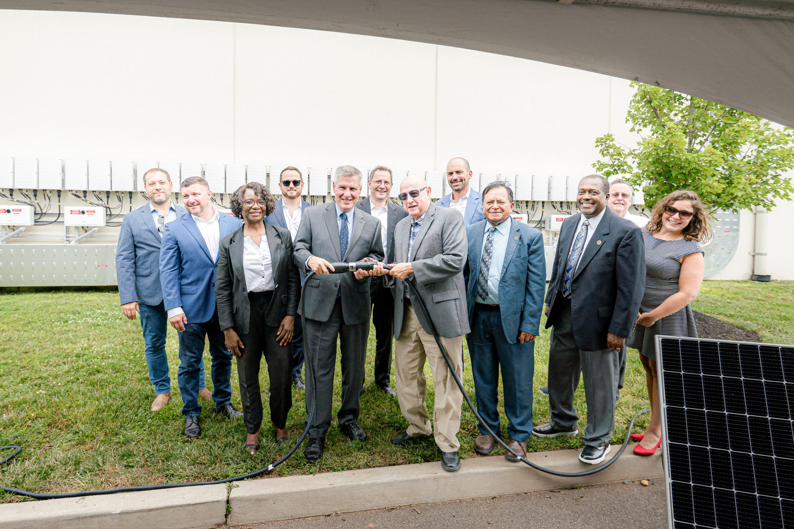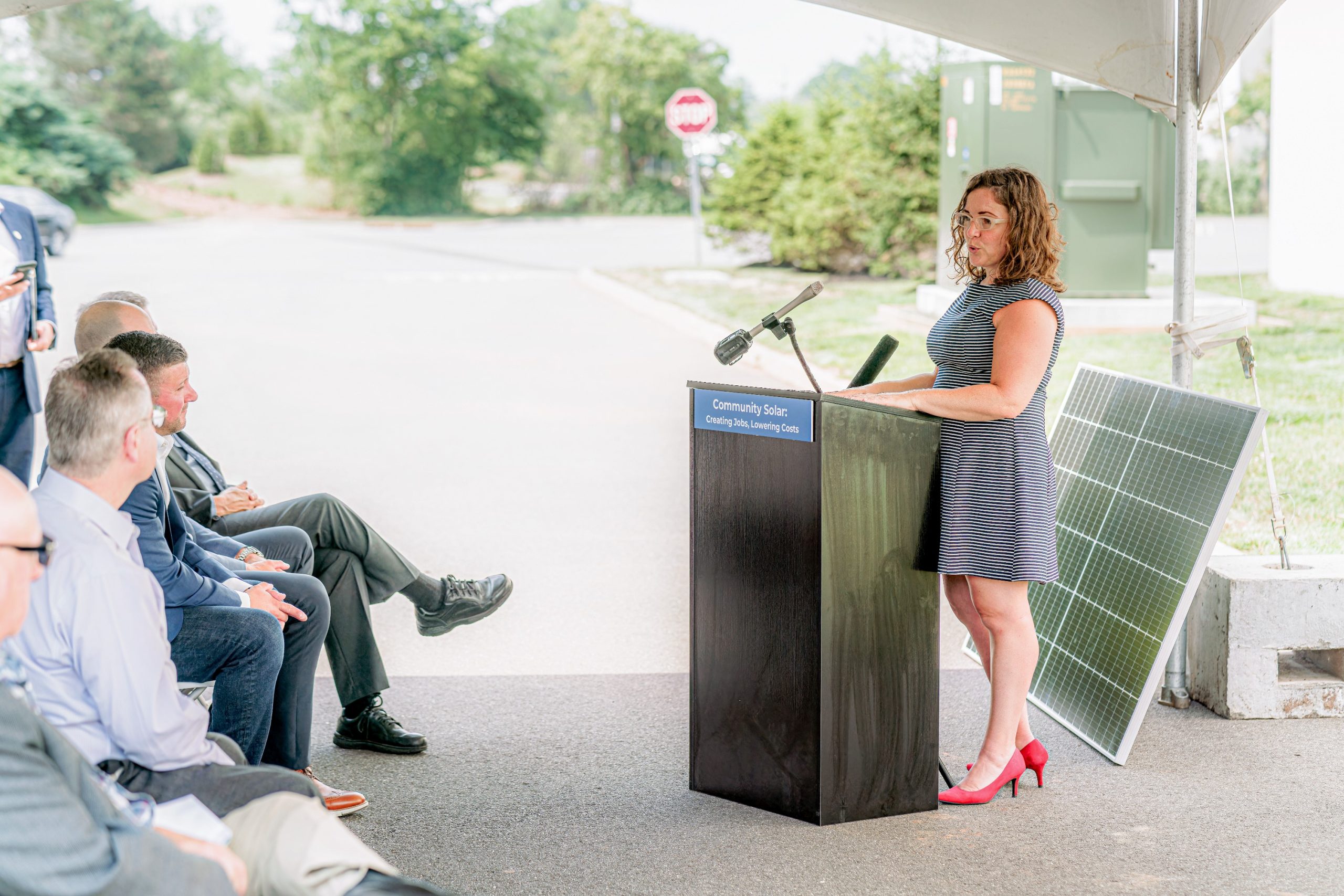 Regulatory officials, elected officials and business leaders in solar energy and real estate connected the cord to complete construction on a new community solar project that will bring solar energy at a discount to almost 300 households.