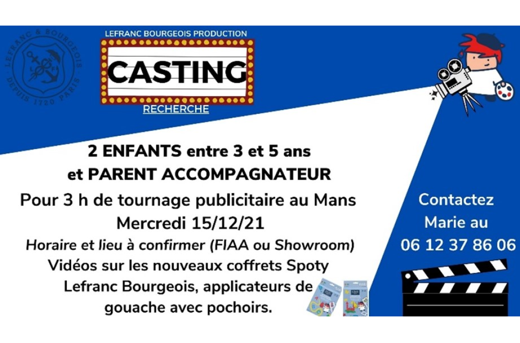 The French family brand Lefranc Bourgeois wanted to involve Colart children in the shooting of its Spoty videos. To do this, a casting session was organised in Le Mans and 3 adorable children happily played the actors. Thanks again to the families for playing the game!