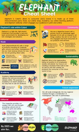 There’s always a lot happening at Elephant, so the team has created some simple infographics to help colleagues across the business better understand the purpose of Elephant, the projects the brand is focusing on and our sustainability goals.