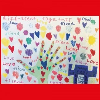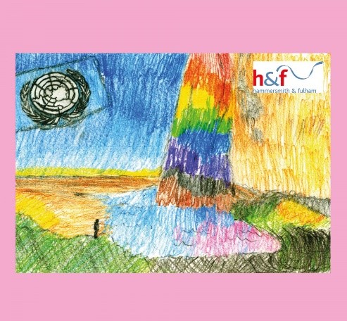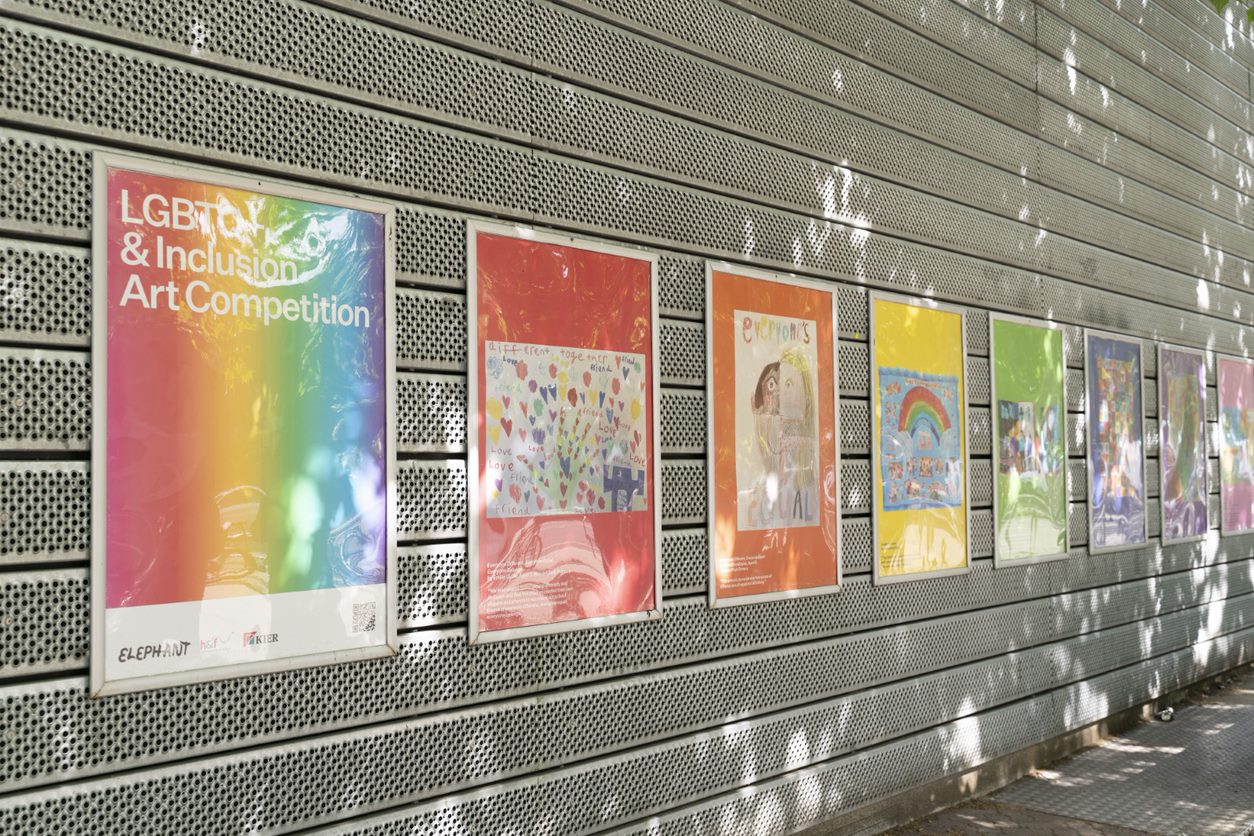 Three of the posters have been presented with special Elephant Awards. Nine-year-old Jonah Hearn won his for creating a polymer clay, cardboard and acrylic paint sculpture that was photographed for his poster. In his work colourful clay figures stand together. “We live together side by side regardless of our similarities or differences,” the young artist says. “Our world should be like a big house for all of us.” Holly Tedla also explored gender expression and diversity in her winning work.