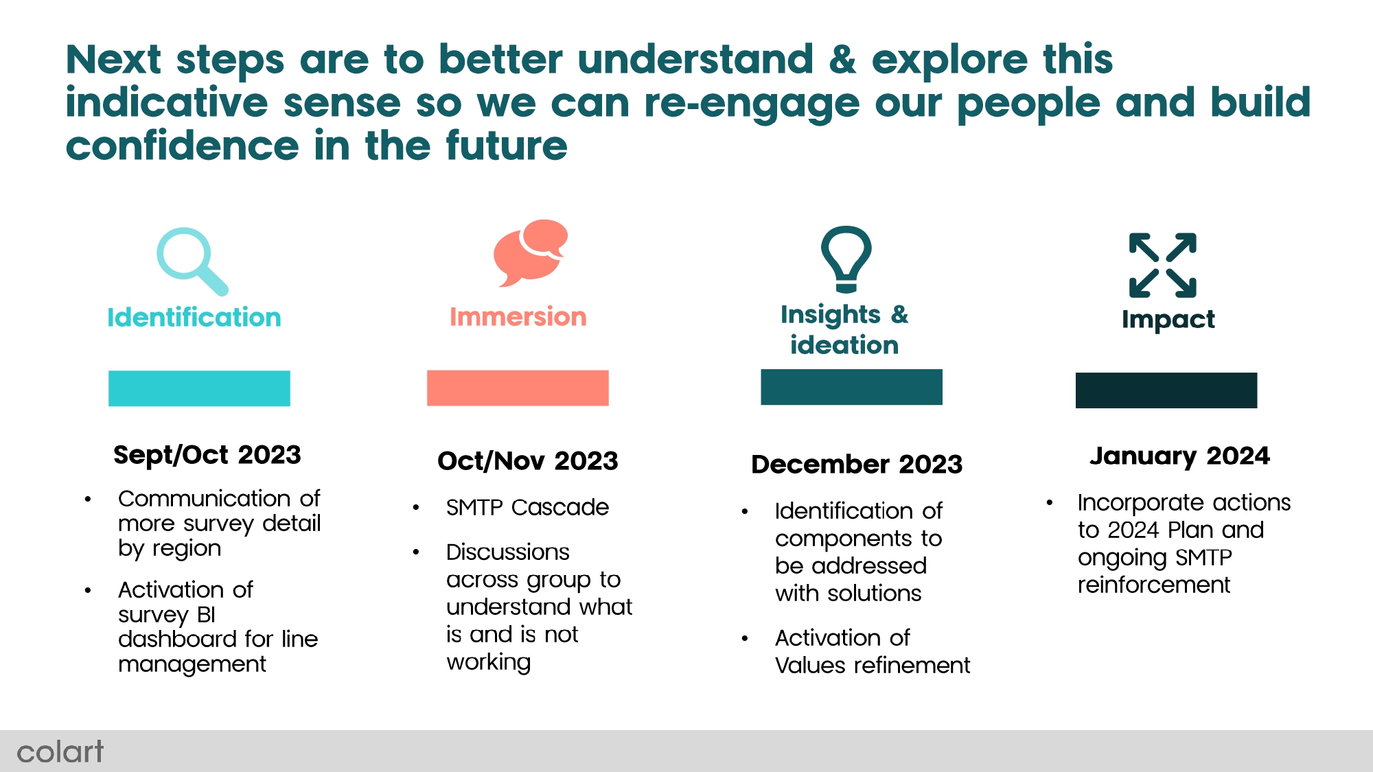 This timeline details our approach to actions and ensures we act on your sentiment and continue to engage and reengage with you in the future.